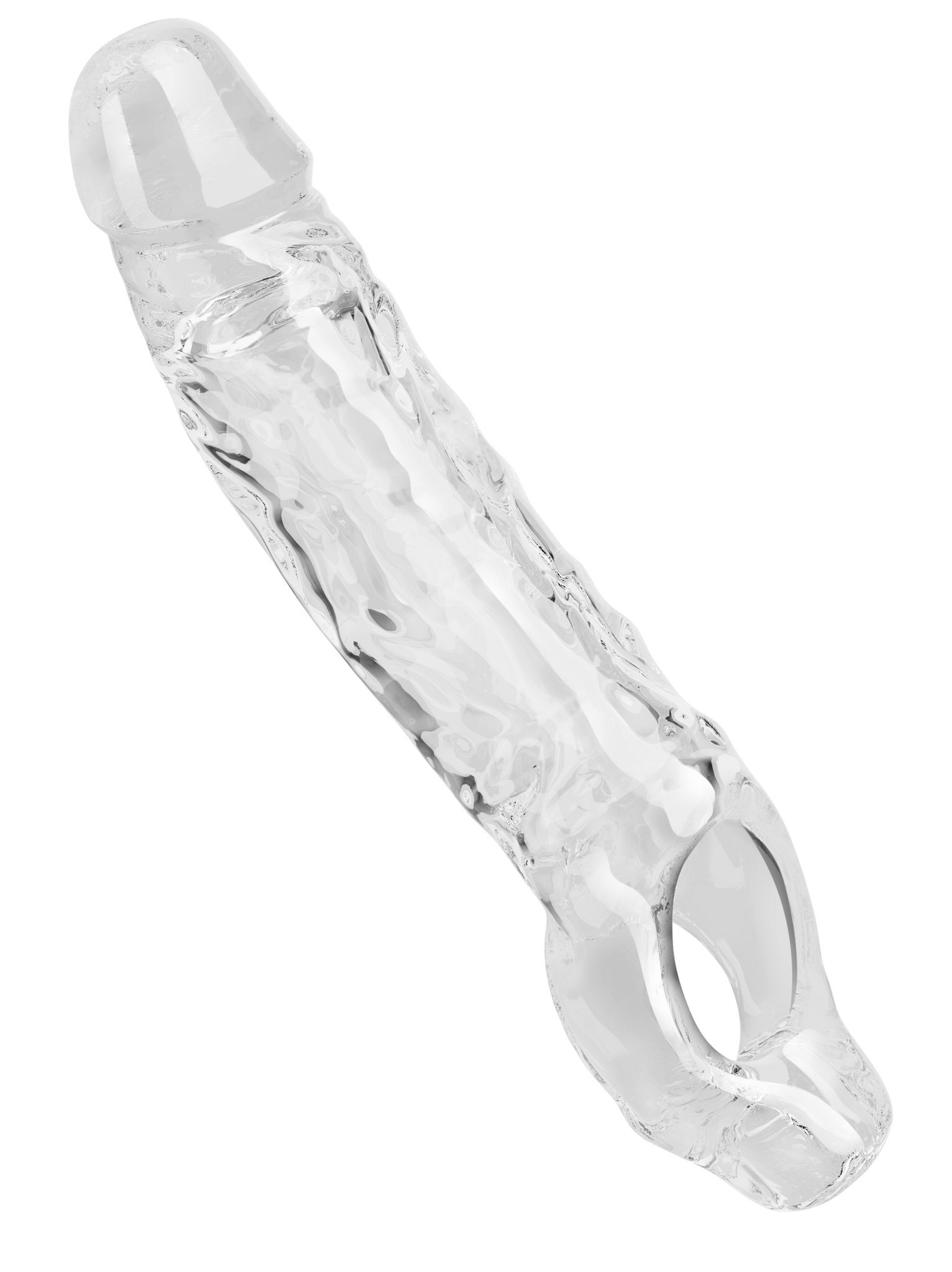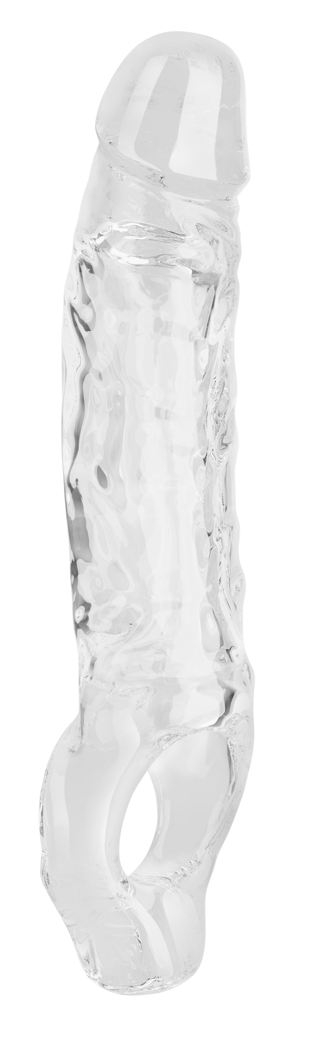 Crafted with a super-realistic look, the extender features a detailed head and vein-like texture that mimics natural anatomy, providing lifelike stimulation that both you and your partner will appreciate. The clear design not only adds a visually stimulating aspect but also allows you to watch as your member moves within, adding an exciting layer to your intimate encounters.