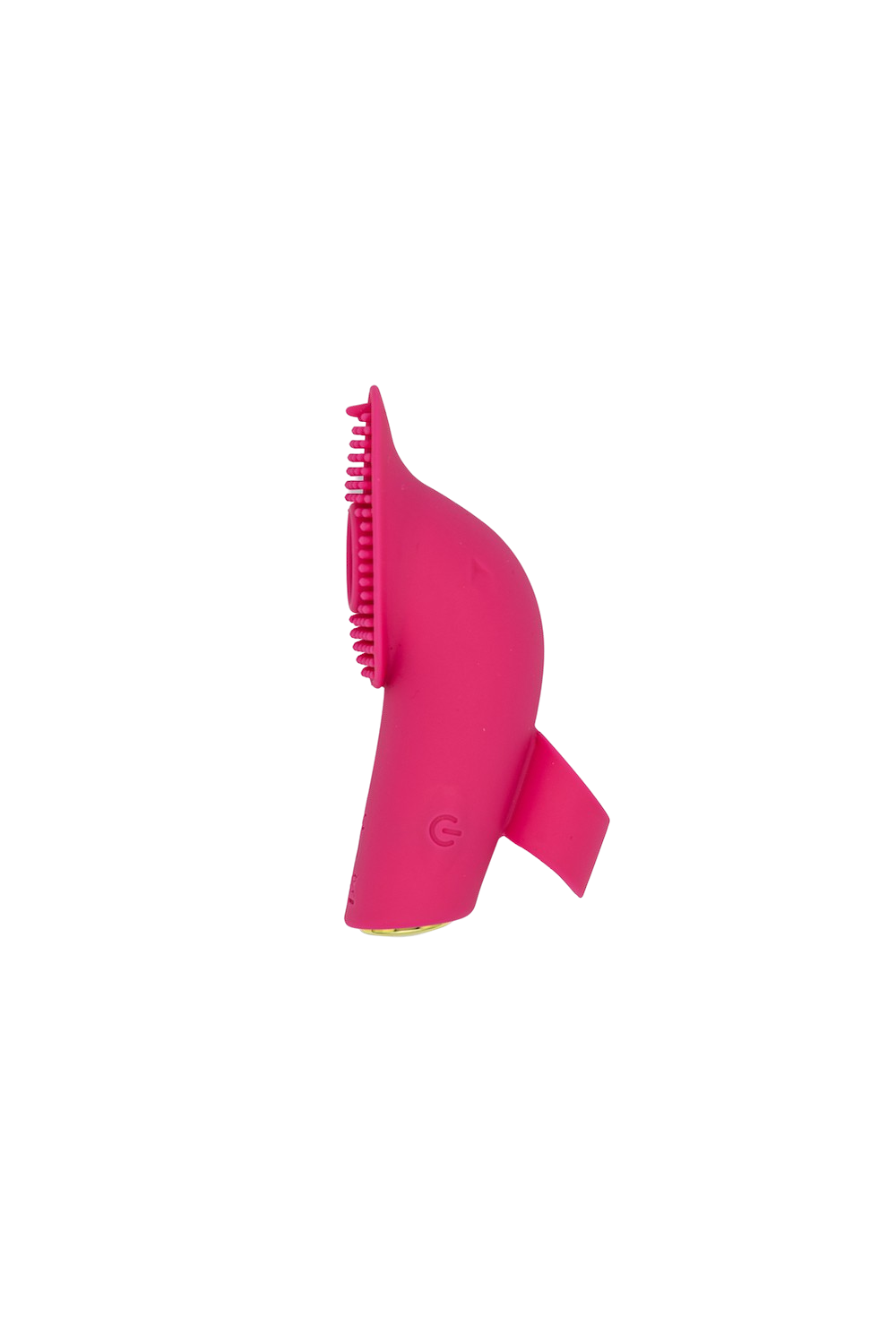 Enter the Finger Pro Flutter. The Finger Pro Flutter transforms your regular old finger into an egg-shaped paddle of 105 textured silicone rods. At the center lies a flickering tongue. The strap on the back keeps it firmly in place. Without even turning it on, this sea of textured silicone alone already elevates the masturbation experience.